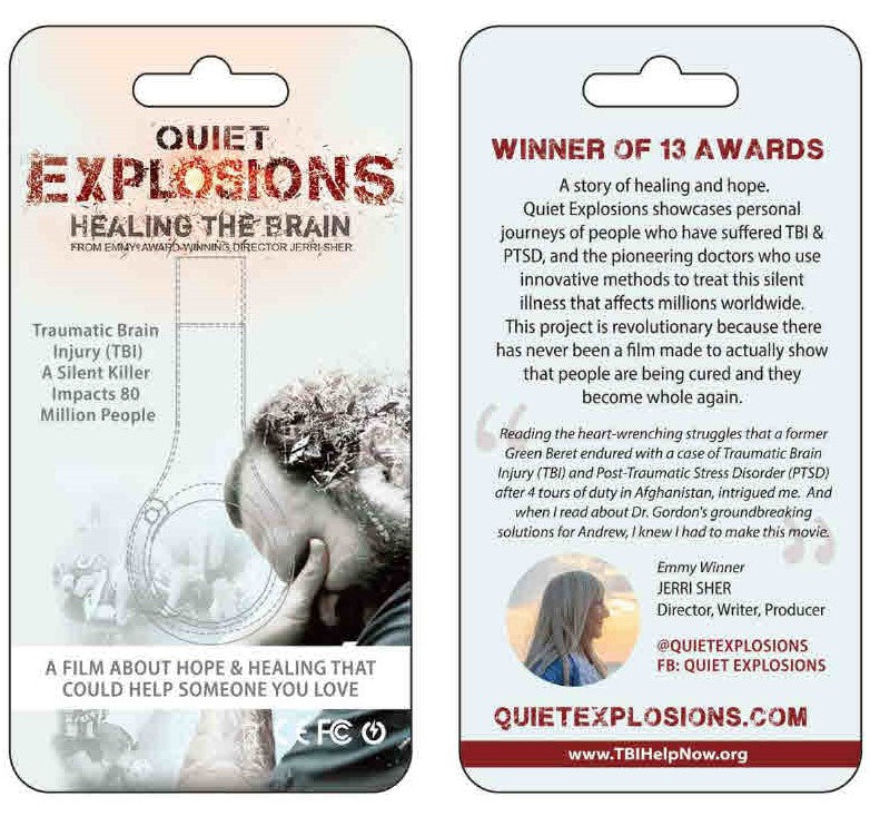 A USB Version of the acclaimed film by Jerri Sher based upon the book Tales From The Blast Factory written by the brothers Adam and Andrew Marr. A deep introspective account of the heroism needed to take oneself out of the despair of a broken healthcare system that supports the treatment of traumatic brain injury with masking drugs in light of addressing causation. "Treat the cause and not the symptoms" has become a rallying slogan for those suffering for years with Hopelessness due to their condition. The Marr brothers open up another avenue filled with hope and real positive results. This USB Drive can be used with C-plug for Apple products and USB adapter for PC.