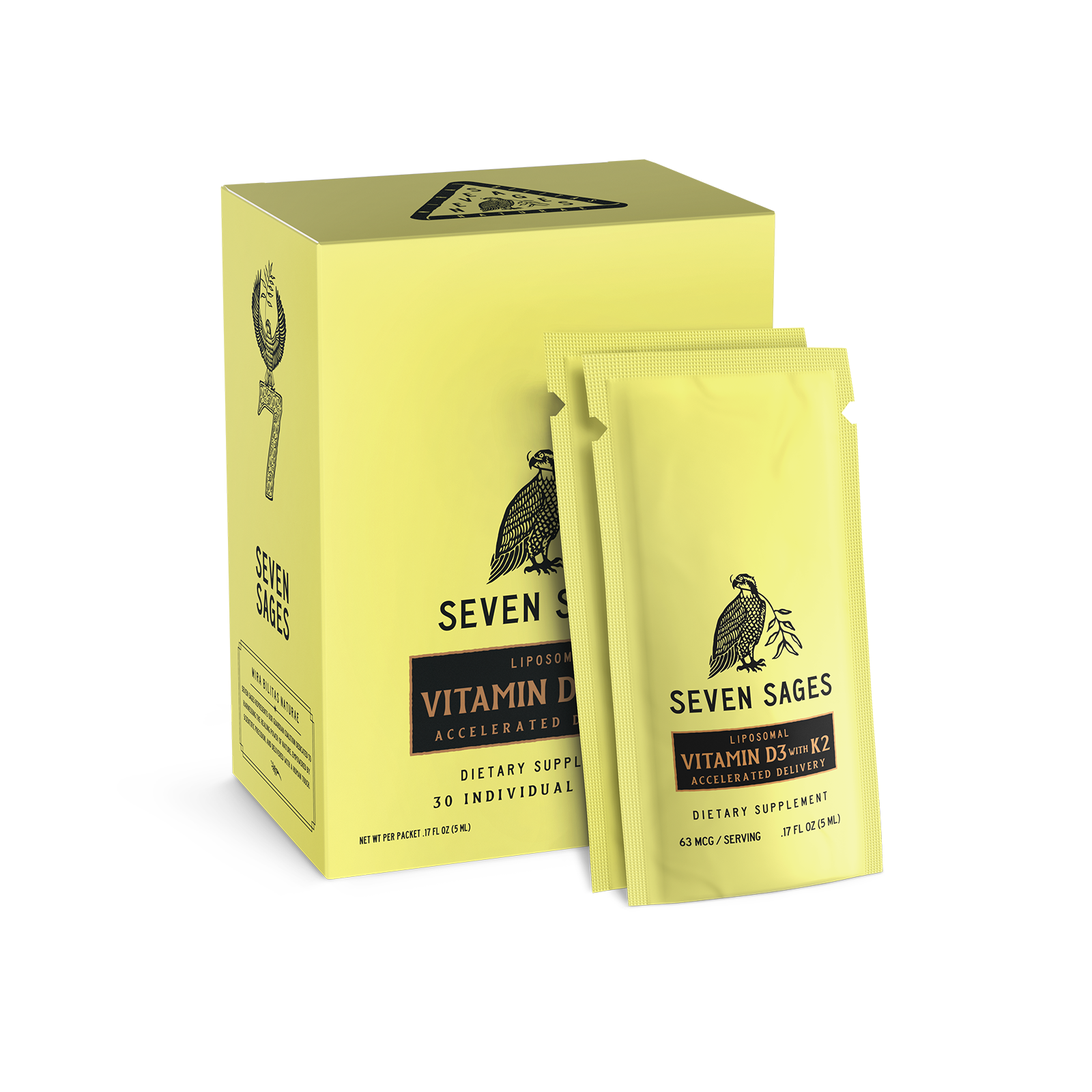Seven Sages Liposomal Vitamin D3 is some of the most powerful oral Vitamin D on the market.  Our liposomal delivery method uses naturally occurring lipids to preserve the nutrients until they enter the bloodstream.  By resisting the stomach's metabolism, we're able to avoid losses in potency that usually occur when the stomach breaks down the molecules.  The end result is a 95% absorption rate compared to 10-20% in traditional vitamins.  Your body will receive the same amount of nutrients from 63mcg/2,500iu of our Vitamin D3 as taking 500mcg/20,000iu or more of other brands.